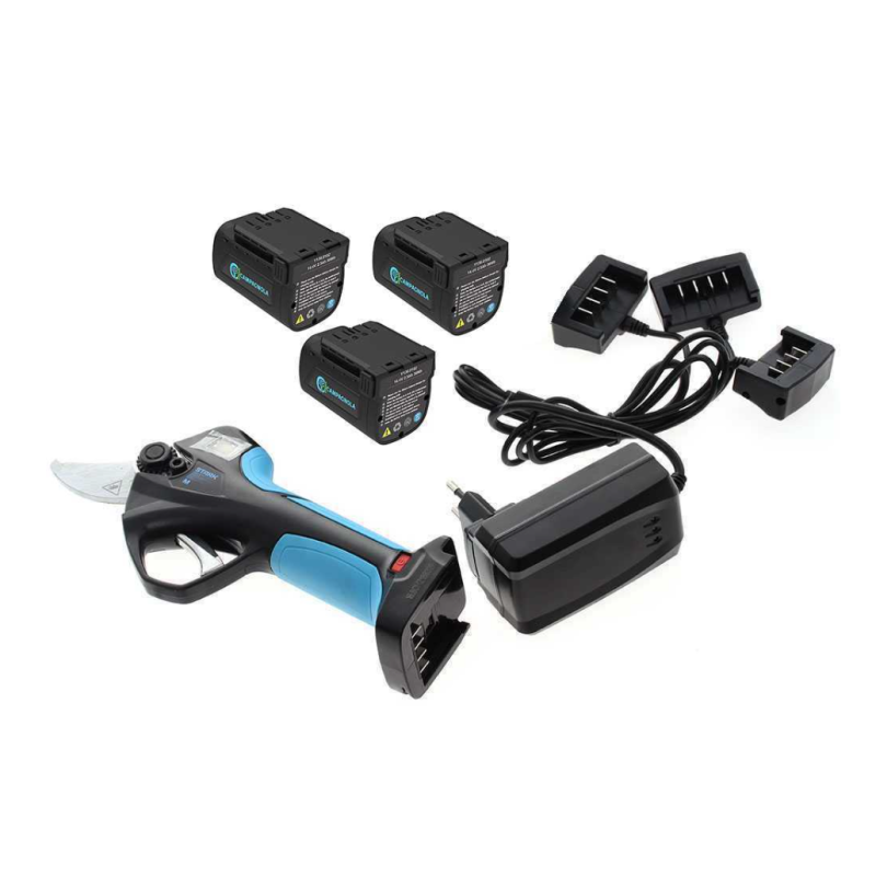 La NUOVA forbice elettrica cordless Stark M è stata realizzata per ottenere il miglior rapporto peso/potenza della categoria. Il motore brushless permette di effettuare tagli È fornita con TRE batterie, con ognuna delle quali è possibile effettuare 2-3 ore di potatura.