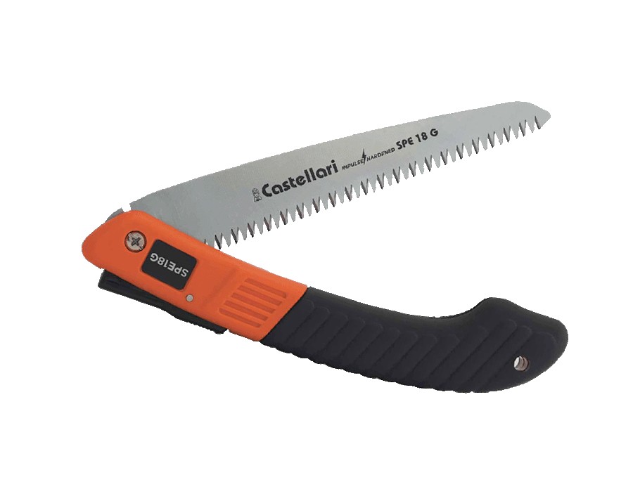 Seghetto professionale pieghevole a lama dritta, pratico, maneggevole e sicuro grazie alla chiusura a scatto. Le lame sono in acciaio ad alto contenuto di carbonio con ricopertura al cromo duro per aumentare la penetrazione nel ramo e come trattamento anti-ruggine. Il taglio netto e preciso rende la superficie del legno liscia e levigata, questo evita infezioni e consente una rapida cicatrizzazione del ramo. I denti sono affilati su 3 piani e con tempra ad impulsi per prolungare al massimo la durata dell’affilatura. La particolare lavorazione della lama detta “a piani svasati” agevola la penetrazione nel ramo diminuendo radicalmente l’attrito. Il manico è ergonomico e garantisce una salda impugnatura.