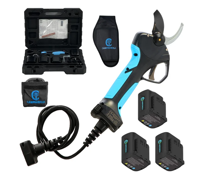 Il motore brushless permette di effettuare tagli fino ad un diametro di 35 mm, per cui è consigliato l’utilizzo per viticoltura, frutticoltura ed olivicoltura. Le lame in acciaio ad alta resistenza consentono tagli netti e precisi senza alcuna sbavatura.